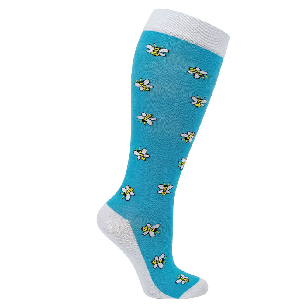 Beim Anblick der Stützstrümpfe Maya Plus summen wir automatisch das gleichnamige Kinderlied vor uns hin. Die blauen, breit geschnittenen Kompressionsstrümpfe mit Bienen-Muster sind für starke Waden gemacht. Sie beugen müden, schweren Beinen und Schwellungen vor. Ein hoher Baumwollanteil sowie der Komfortbund sorgen zusätzlich für ein angenehmes Tragegefühl.