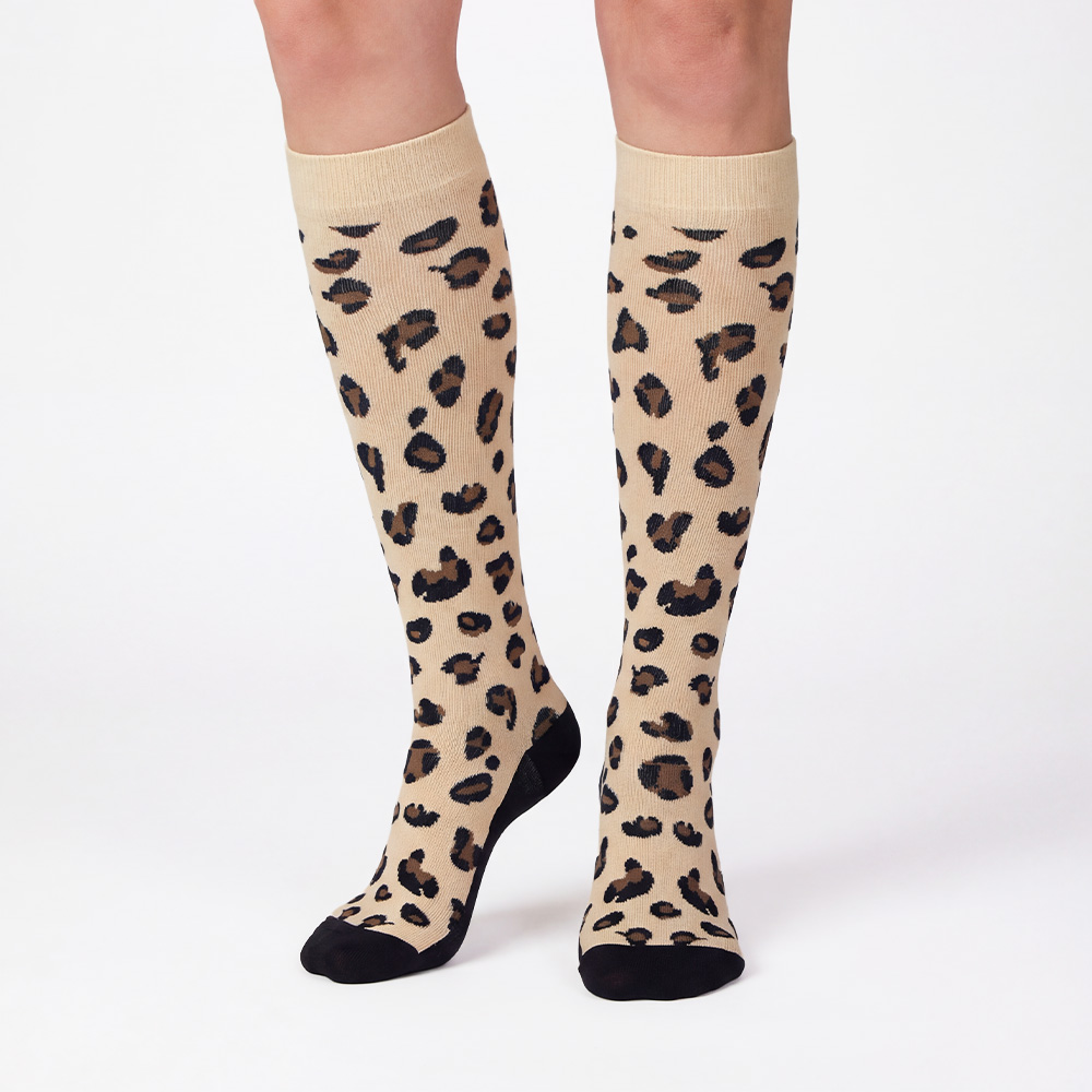 Wild gemustert, angenehm leicht 🐆 Leo ist dein kniehoher Stützstrumpf mit auffälligem Leoparden-Design aus feiner merzerisierter Baumwolle. Luftig, hautfreundlich und bequem – sorgt für spürbare Entlastung bei langem Stehen, Sitzen oder Reisen. Für alle, die Alltagssupport mit einem Hauch Wildstyle lieben.