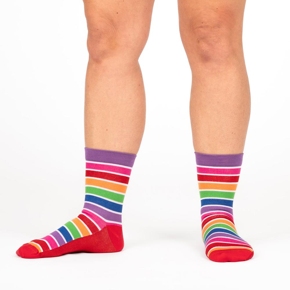 Unseren beliebten xunt-Strumpf haben wir auch als Kompressionssocken auf Lager. Die bunt gestreiften, kurzen Socken in den 7 xunt-Farben lassen sich einfach anziehen und sind dank hohem Komfortbund besonders bequem.